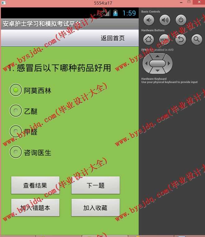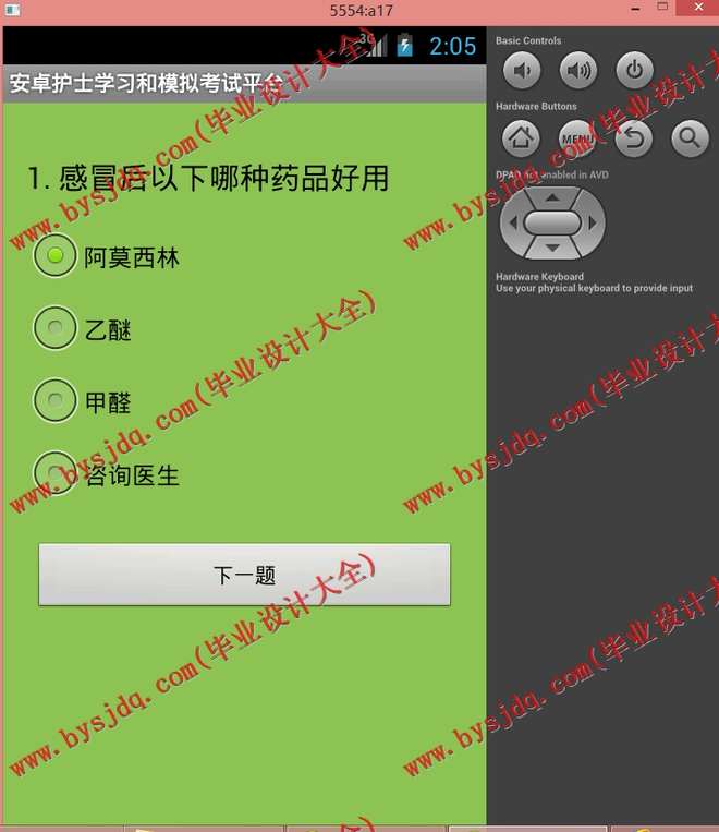 综合练习功能。此功能从题库中选取所有的题目,答题者可以选择查看答案,然后点击下一题依次到最后一题。