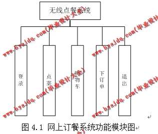 网上订餐系统功能模块图如图4.1所示: