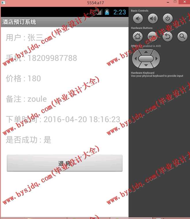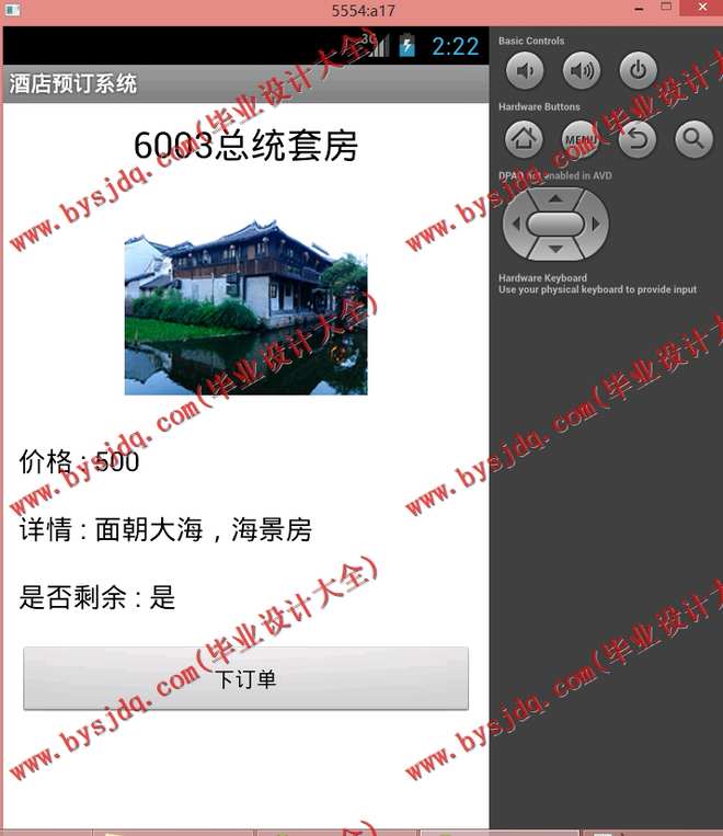 用户可以查找,预订该酒店客房。