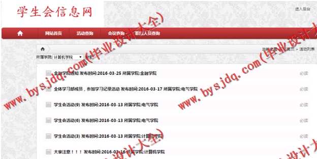 随着校园网的建设和发展, 依靠传统的学生会信息管理体制,显然己经不能适应当今社会发展需求。 因此开发一个学生会网站管理系统对学生会的发展和管理的重要作用越来越显著。互联网技术的快速发展,网络早已经成为现代人日常生活中不可或缺的部分,它己经渗透到我们社会和经济生活中的各个领域。随着人们进行信息交流的深度与广度不断增加,电子商务在各行各业也得到极大地发展与普及。然而,传统的学生会管理,大都是以实际人们信息传递的形式来进行宣传、交流和对外服务;并且采用人工的方式来进行学生会信息的各项管理,比如手工进行记录,学生会信息的管理,口头通知或者是通过移动电话等方式进行关于交易的信息传递与交流,拿最平常的信息传递来讲,光是每个学生会成员的传达通知就是一道令人棘手的过程。同时,对于管理人员的文件管理,过去也多数是以纸质材料进行保存,这样查询起来不仅麻烦不方便,保密性比较差,而且容易磨损,不易保存,另外时间一长,将会产生大量的文件和数据,这对于查找、更新和维护都带来了不少的困难。如果采用电子文档的方式进行保存,不仅查询起来方便,而且安全性比较高,只有权限的人才可以看得到,只要多备份几个,而且多处备份也更容易。可以保存很多年,不会发生像传统的纸质材料保存所出现的受潮等一些损坏。上述问题,在当今计算机技术和互联网技术不断发展的今天,可以轻而易举的通过计算机和网络来完成,不仅方便快捷,而且简单,易操作。