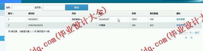 (2)商品管理:该模块实现对商品信息的录入进行有效管理,并实现按不同条件对这些数据进行有效查询,删除及更改的功能。
