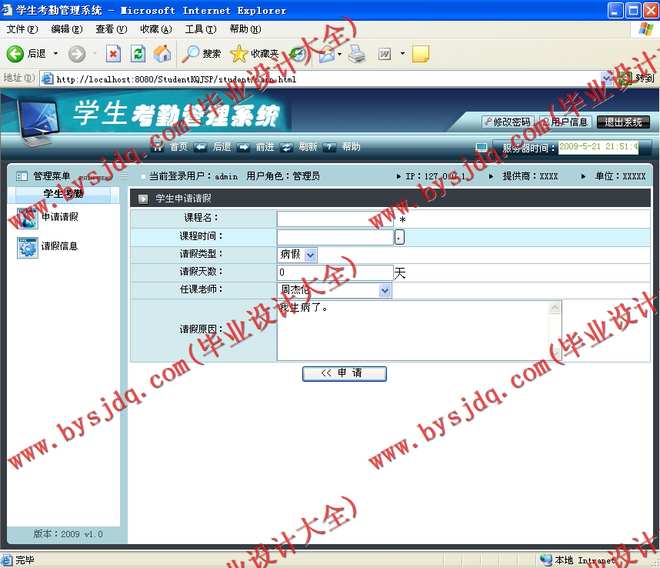 409基于SSH/Java学生请假管理系统的设计与实现