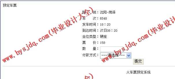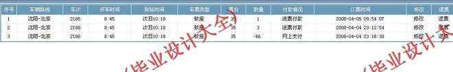 售票:通过查询系统,客户根据自己的需求找到满意的车次,再输入个人信息后直接通过网上售票确定已预订选中的车票。