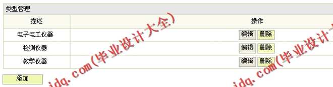 (2)设备类别管理模块:在该模块中定义了对设备类别信息的管理,其功能包括设备类别信息录入、查询、修改、删除等操作。