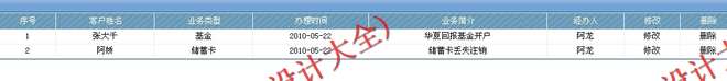 a、可以添加客户办理业务的记录(比如储蓄卡、信用卡、网银、基金、保险、理财产品等相关业务) 和经办人