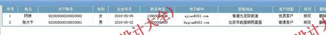 c、可以对客户资料信息进行增加(包括姓名、开户账号、性别、出生年月、联系电话、e-mail等)