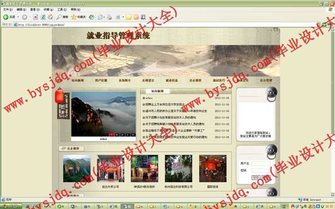 (4)方便移植:系统应具有实用性、可靠性和适用性,同时注意到先进性。针对不同的用户,只需要稍作修改就可以开发出适合自己特点的高校就业信息宣传网站。系统界面中所需的数据都存放于数据文件中,只要对该文件做部分修改,就能在系统界面上实现及时更新的效果,减少了更改系统源代码的复杂性。