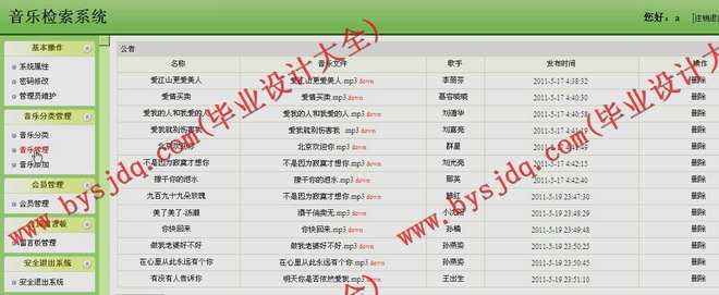 基于对上述的认识,收集相关资料和数据,查阅有关文献及技术参数,对音乐检索的实际需求等方面进行了调研,发现目前所采用的手工记录的方法进行管理存在以下几个方面的弊端:对象范围广,数据存储不易;填写的数据多,且大量数据重复;不易存档,成千上万的信息和堆积如山的单据对管理人员来说是一个负担,需要大量的文档资料。鉴于以上种种原因,音乐检索的管理急需一种软件来代替手工操作来管理数据资料。