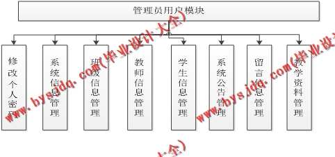 (2)管理员用户具有系统信息管理、班级信息管理、教师信息管理、学生信息管理、公告管理、留言管理、资料管理等功能。