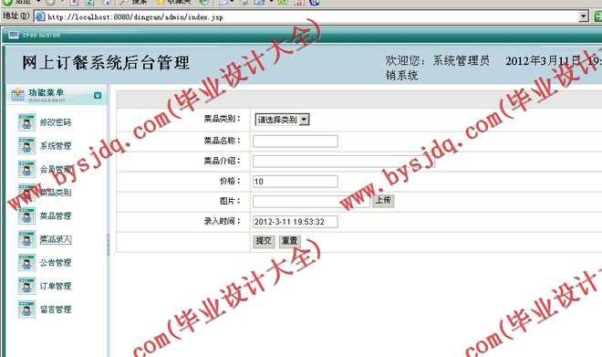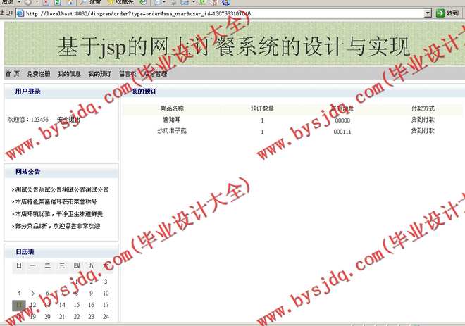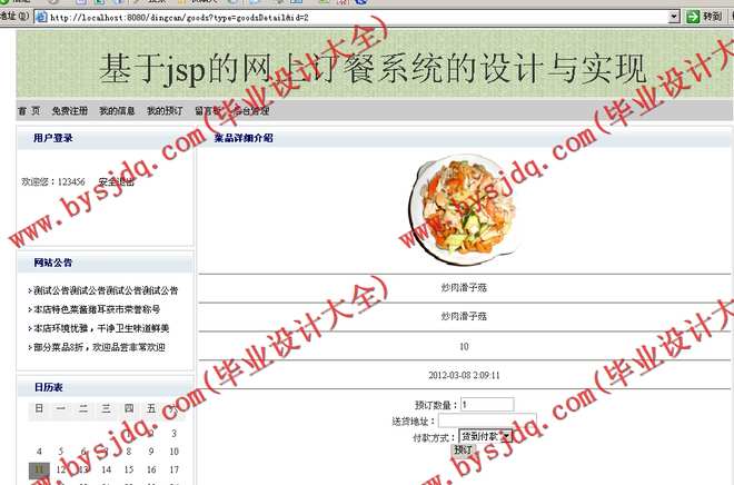 530基于JSP/Java的网上订餐系统的设计与实现