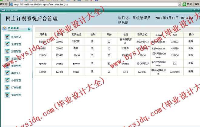 管理员需求分析:管理员有自己的账户,登陆后能进行密码修改还可以进行管理员分配,最主要的就是产品的维护菜品信息管理,菜品分类管理,菜品录入操作,还可以管理公告留言,并可以查看此客户所申请的产品订单和订单管理。