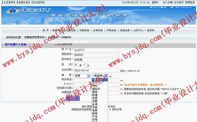 二手房租售登记模块,主要实现的是管理员以及超级用户(当地房地产公司),即时将拥有的房源具体情况(如地址,面积,户主,联系方式等)登记,经过房屋租赁公司实地考察属实后,向客户出售或者出租。