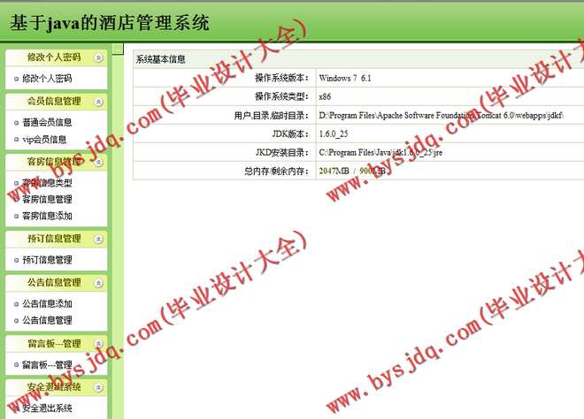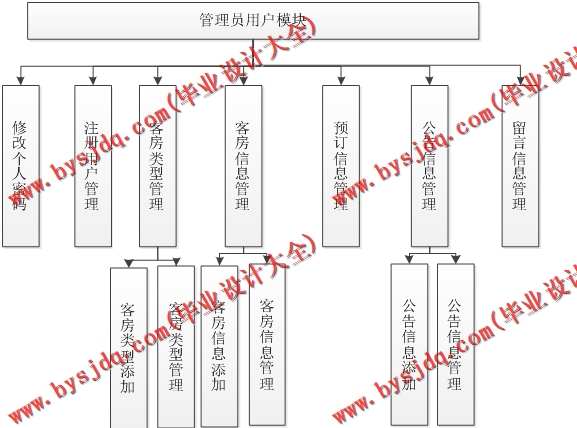 (2)管理员用户具有注册用户信息管理、客房类型管理、客房信息管理、预订信息管理、公告及留言管理等功能。
