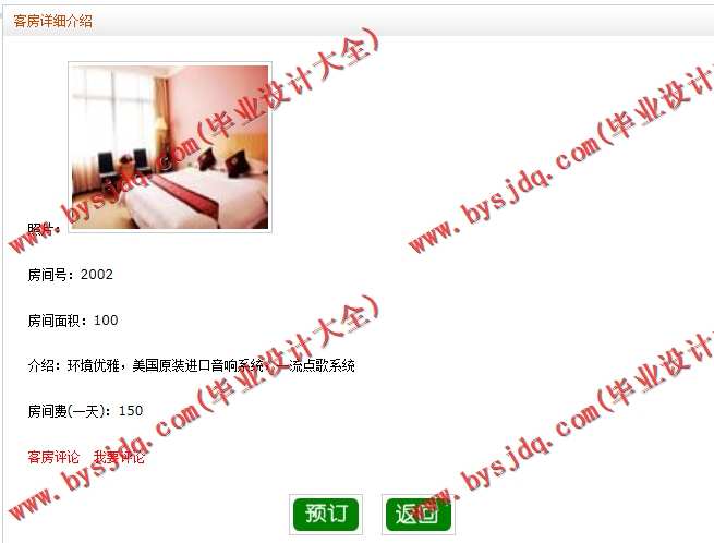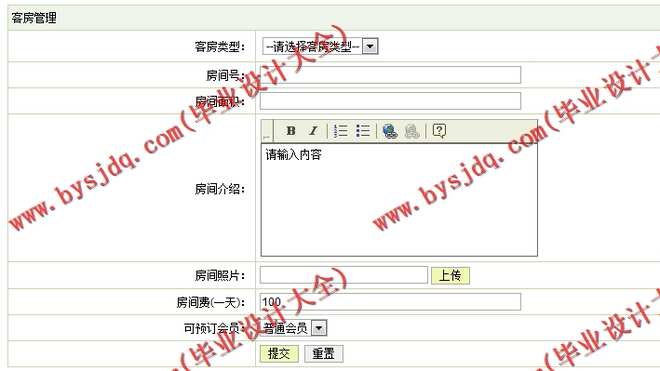 (3)客房信息管理模块:在该模块中定义了对客房信息的管理,其功能包括客房信息的录入、查询、删除等操作。