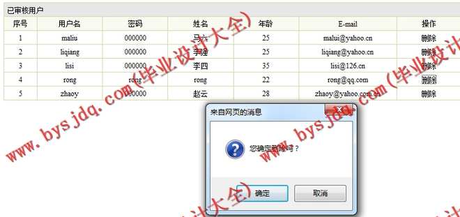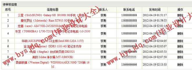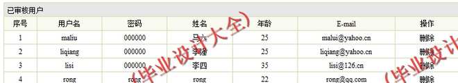 (2)注册用户管理模块:在该模块中定义了注册用户信息的管理,其功能包括注册用户信息查询、审核、删除等操作。