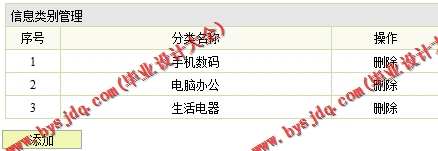 (3)类别管理模块:在该模块中定义了对产品类别信息的管理,其功能包括类别信息录入、查询、删除等操作。