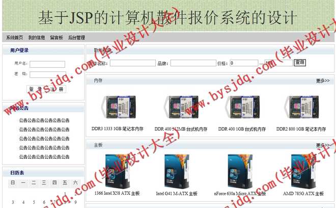 计算机散件报价系统主要通过Java和mysql数据库软件进行开发,通过该系统,用户可以很方便的查询计算机产品的信息,并进行在线交易。