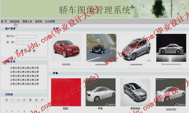 本课题研究的主要内容是基于Sructs2框架的汽车图像管理系统,系统包括用户登录模块、图像上传下载模块、图像删除模块、图像分类模块、以及图像评论模块这五个模块。