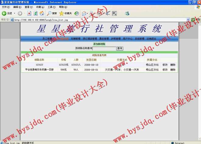 该系统主要完成目标是建立一个功能齐全、界面友好、使用方便的管理信息系统,能够迅速准确地完成顾客各种信息处理,旅游线路制定,工作人员调度等工作,及时快速打印出客户信息表,旅游项目一览表,车辆,导游调度表,对外业务处理表等信息的旅行社地接门市管理信息系统。