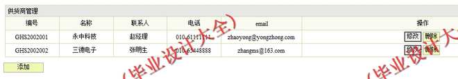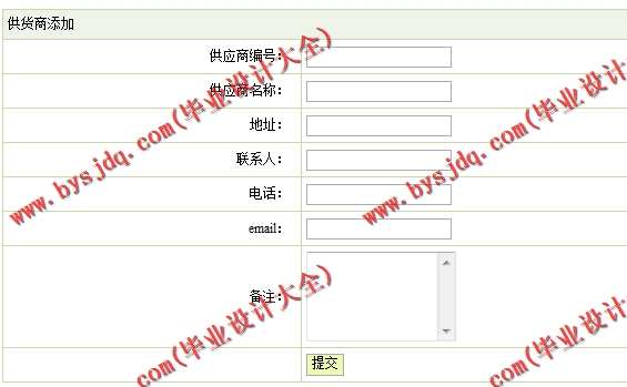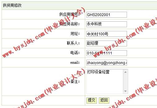 (1)供货商管理模块:在该模块中定义了供货商的管理,其功能包括供货商录入、查询、修、删除等操作。