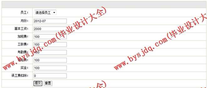 (5)工资管理:工资管理(管理员工工资信息,添加删除打印员工工资信息)、工资录入(修改员工工资信息)、工资查询(查询员工工资信息)