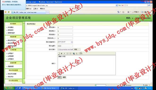 本系统是针对中小型企业项目管理现状,通过网络实现对企业项目信息的管理,主要实现如下目标: