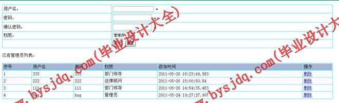 该模块实现了对角色的管理包括管理,法律顾问,部门领导等。在该页面也可以密码进行修改。