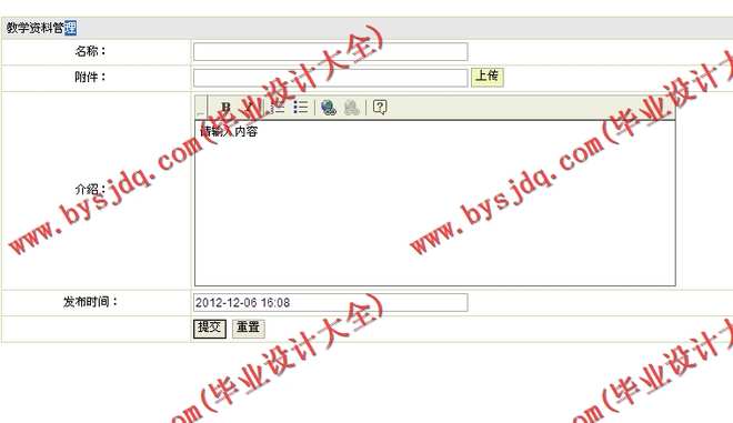 2. 管理员可以查询本人的教学安排,然后根据教学发布教学资料,教学视频,自测题.