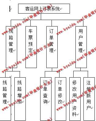 根据客运公司的需要,系统应当包含基本的功能有:用户注册、用户登录和管理员登录,线路查看等。用户则划分为基本乘客和管理员两大类,管理员还兼具有管理职能。功能模块图如下: