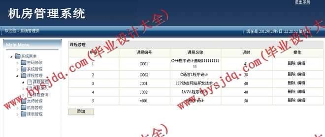 5、课表管理:为机房的使用分配相应的课程表信息。