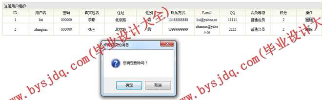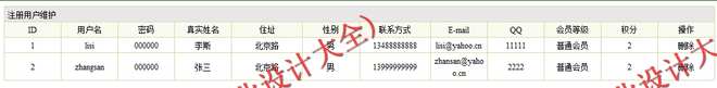 (2)会员信息管理模块:在该模块中定义了注册会员信息的管理,其功能包括会员信息的查询、删除等操作。