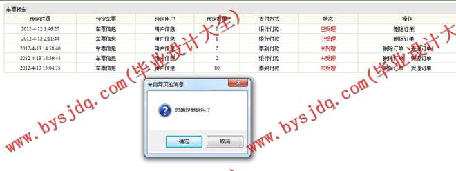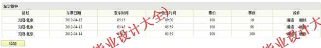 (3)车次信息管理模块:在该模块中定义了对车次信息的管理,其功能包括车次信息录入、查询、删除等操作。
