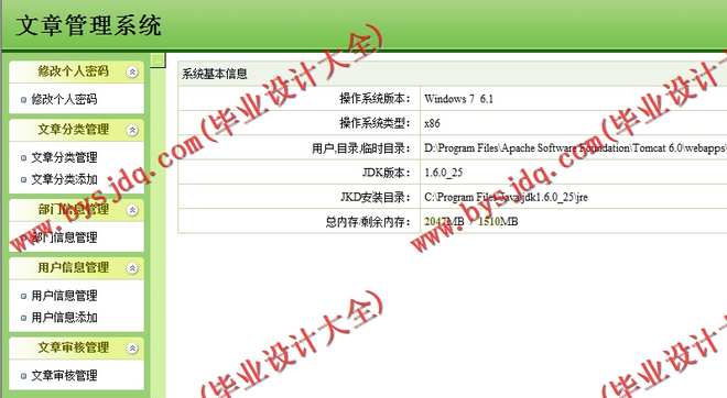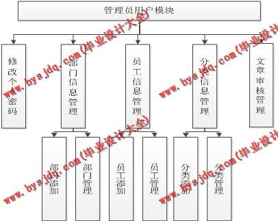 (2)管理员用户具有部门信息管理、用户信息管理、文章分类管理、文章审核等功能