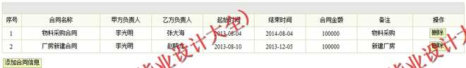 管理人员将签订后的合同的各项信息存入数据库中,使合同进入开始执行的状态。