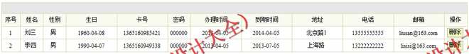 在会员卡管理模块中,主要实现了对会员信息和会员卡的管理,其中包括新增会员卡,修改会员卡,删除会员卡。比如在新增会员卡中,可以填写会员姓名、性别、年龄、卡号、办卡时间以及具体备注等事项。