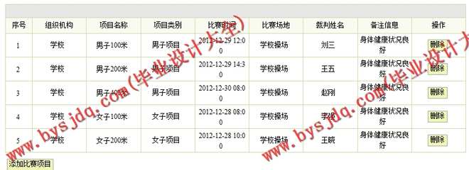 (2)管理员可以管理班级、比赛项目、报名信息,对上述内容进行增加、查询、删除操作。