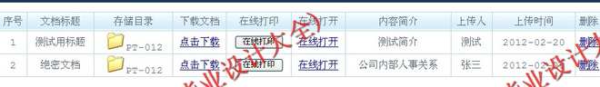 二级用户:包含一级管理员权限,显示所有文档、文档上传、文档下载、文档删除。