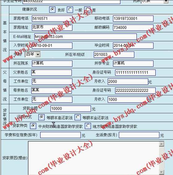 在校大学生贷款管理系统是将IT技术用于在校大学生贷款中大学生个人信用档案的管理,它能够收集与存储大学生的个人信用档案,提供更新与检索大学生个人信用档案的接口;协助学校和银行开展大学生助学贷款工作提高工作效率,降低银行的放贷风险;提高学校和大学生的诚信形象。