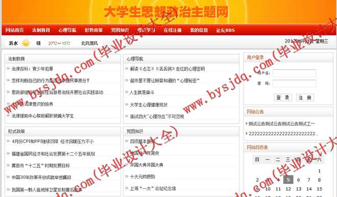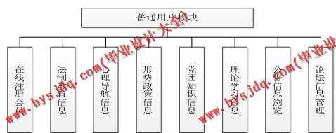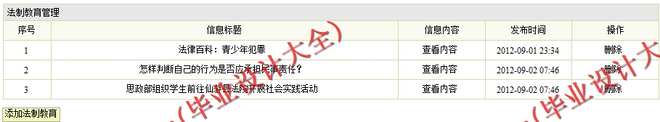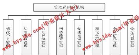 (2) 管理员用户具有系统信息管理、法制教育管理、形势政策管理、党团知识管理、公告管理、论坛信息管理、理论知识管理等功能。