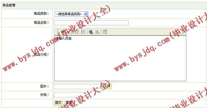 (2)商品信息管理模块:在该模块中定义了商品信息的管理,其功能包括商品录入、查询、删除等操作。
