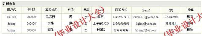 (3)会员管理模块:该模块中包括浏览会员信息和删除会员信息2个功能。