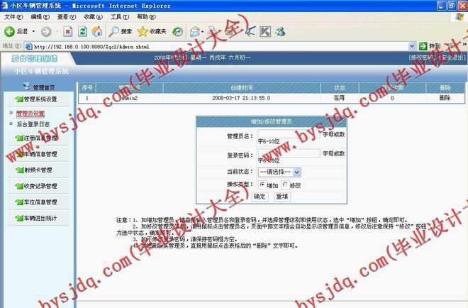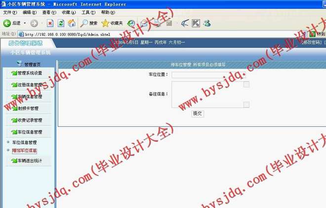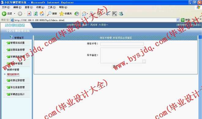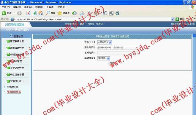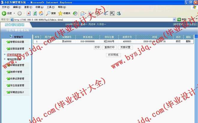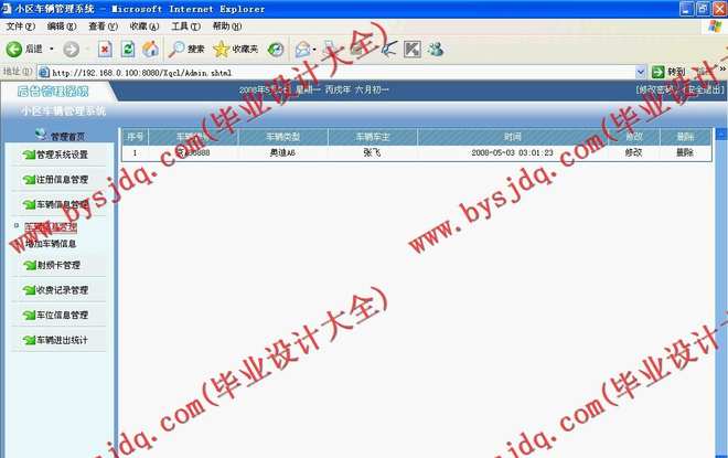 本文主要介绍了基于卡式的小区车辆管理系统的设计,本系统主要采用JSP为编程语言,可以方便管理小区车辆管理需要。后台主要包括车辆管理,停车卡管理,车位管理等功能。本系统操作简单,使用方便。