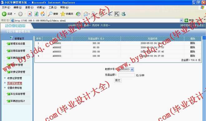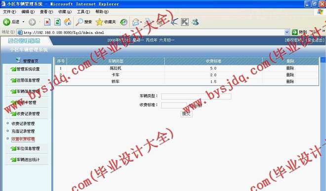 对小区存放的车辆进行收费管理,分时间段,分车辆型号进行收费统计,包括停车卡的充值缴费