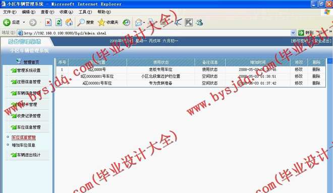 对车位进行管理,包括车辆对应汽车的更新,修改等。