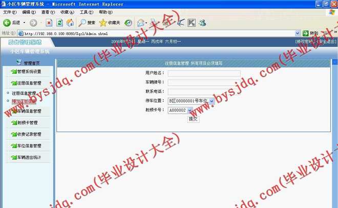 对新加入本系统管理的小区车辆各项信息进行登记,包括车主姓名,车牌号,联系电话,车位号,卡号 等。