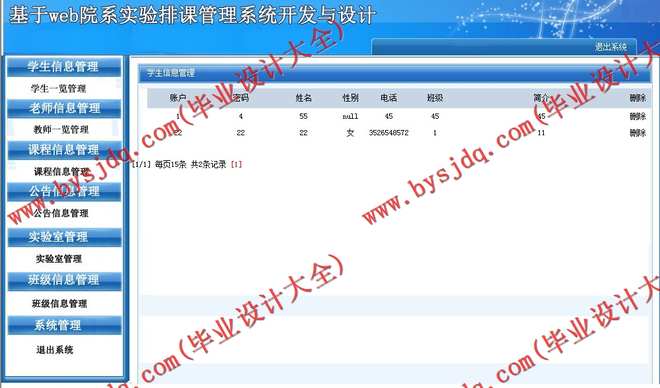 实验教务人员对该类信息进行添加、修改、删除,对其他用户提供查询功能。