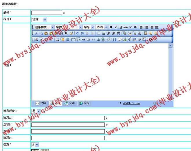 (2)题库添加删除修改功能:主要完成教师对题库的操作,包含试题的录入,查看,删除及修改