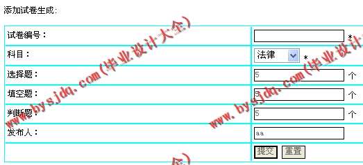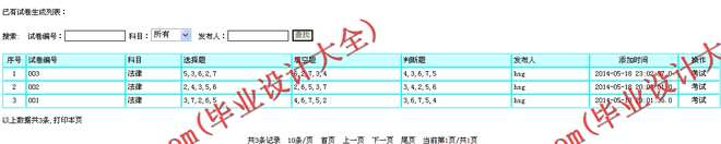 (3)试卷生成:主要根据不同的条件从题库中选出符合要求的试题生成试