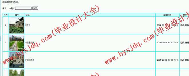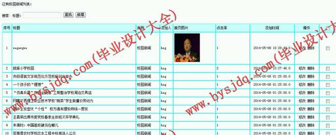 新闻发布管理:管理员分别管理和发布、修改、删除学校公告、新闻、风光照片墙