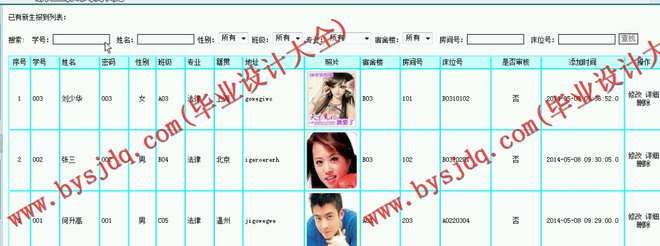 学生宿舍管理:管理员匹配学生宿舍信息,可以为学生分配、更换宿舍。